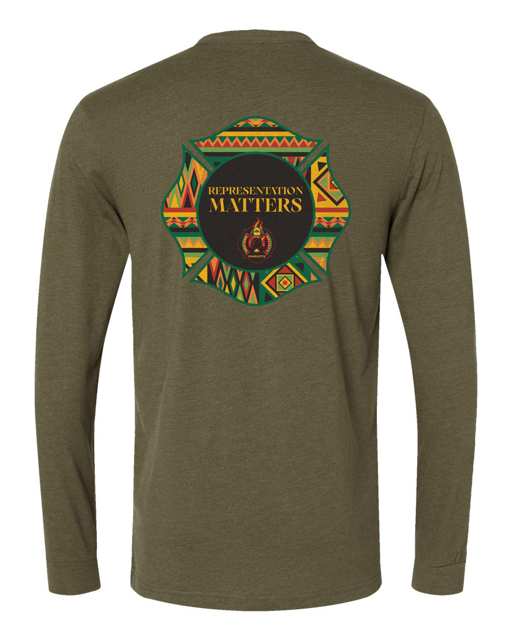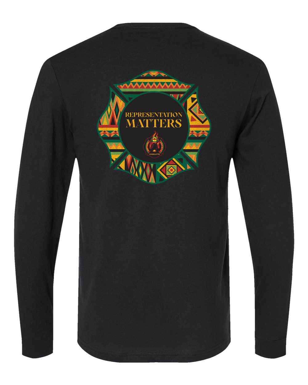 The back displays the Representation Matters emblem. This powerful crest stands as a symbol of unity, visibility, and commitment to excellence within the fire service and the community. Crafted from a soft yet durable cotton-blend, this tee is designed for comfort, warmth, and pride — whether worn at the station, in the community, or off duty.